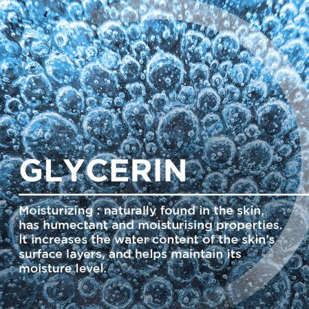 - يشكل حمض الهيالورونيك، الموجود بشكل طبيعي في الجلد، طبقة مرطبة غير انسدادية. فهو يحتفظ بالمياه على سطح الجلد وبالتالي يعمل بمثابة خزان للمياه.